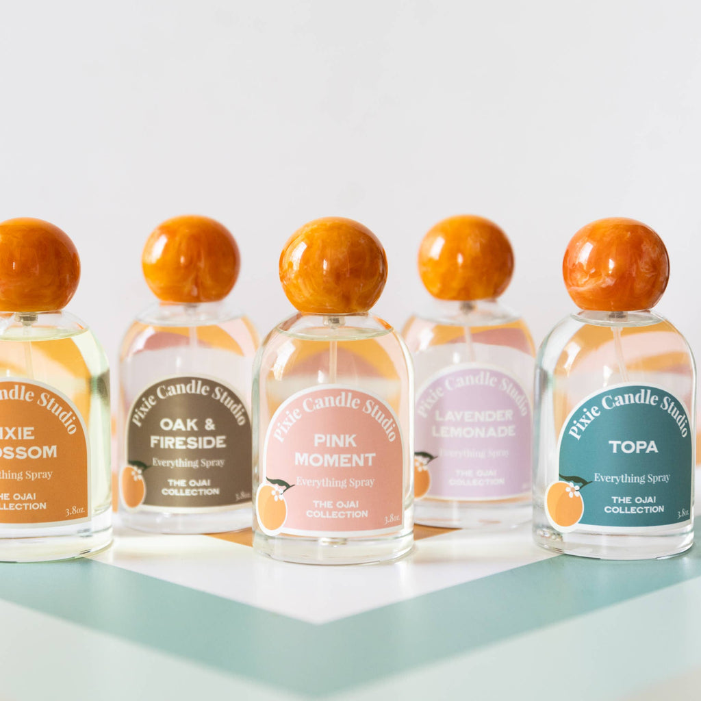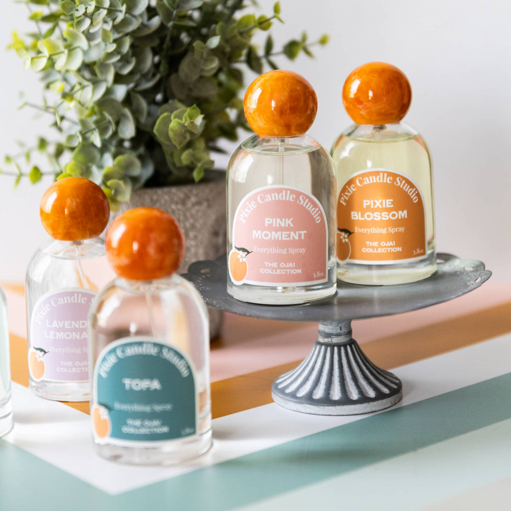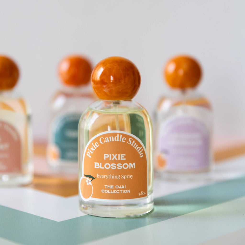 Pixie Blossom is a 112 ml fragranced mist combining orange blossom bergamot neroli and jasmine to provide a bright floral lift for rooms linens or as a light body mist. The formula is intended for surface and ambient refresh rather than concentrated parfum.