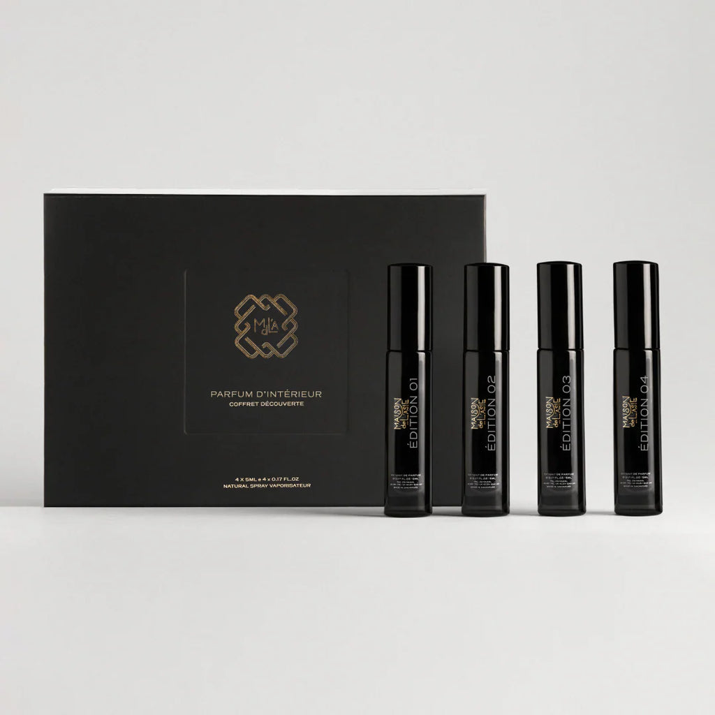 Parfum d'Interieur Discovery Set from Maison de L'Asie is a four-sample Eau de Parfum collection that helps you evaluate distinct scent profiles for your home or travel. The set delivers measurable sampling with a total of 20 ml across four 5 ml vials so you can test aroma and longevity before choosing a full bottle.