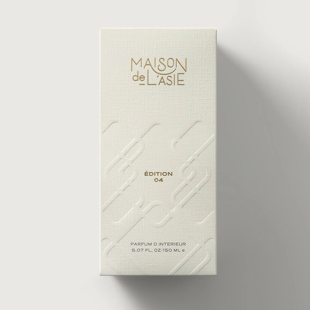 ÉDITION 04 Parfum d’Intérieur by Maison de L'Asie is a home fragrance designed to create a layered, sacred aroma in interiors. The scent opens on a sandalwood base and is carried by extracts of tulsi and liquorice with a subtle sweetness from orange peel and soft earthy accords.