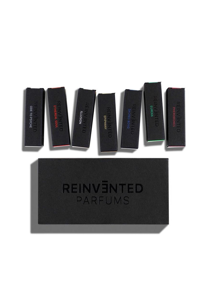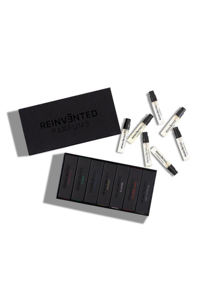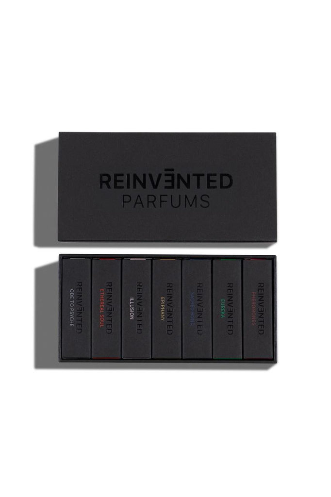 The Discovery Kit from Reinvented Parfums is a set of seven extrait de parfum samples designed to help you evaluate concentrated fragrances before buying a full bottle. The kit gives you direct access to distinct scent constructions so you can test dry-down, sillage, and layering on your skin.
